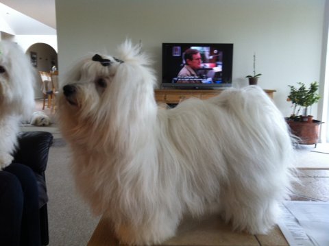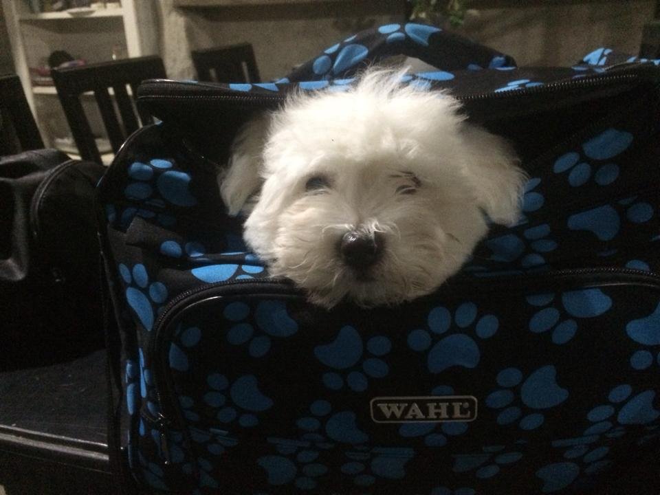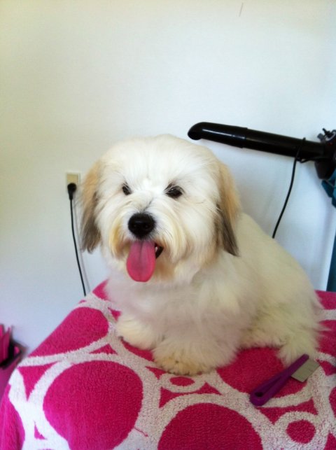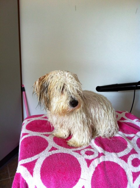 Casanova fotograferet efter vask med ny champoo i det nyopsatte spejl i grooming-rummet