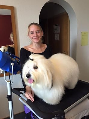 Sandie har groomet Casanova før udstillingen i Dortmund