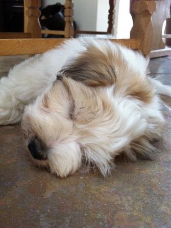 Coton Langelands Basil på sin første "rigtige" gåtur i snor - 8 uger gammel
