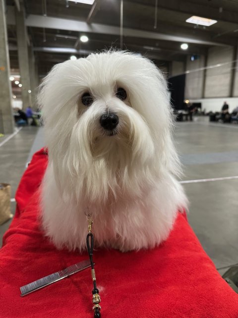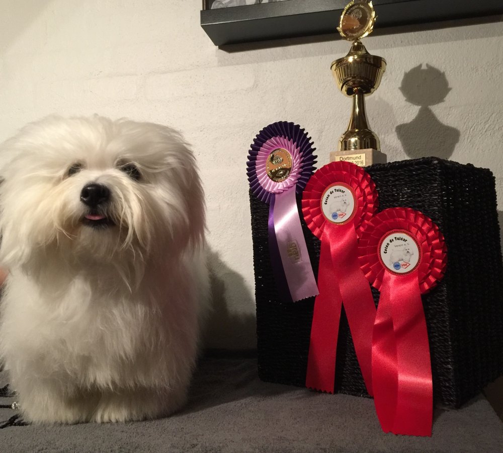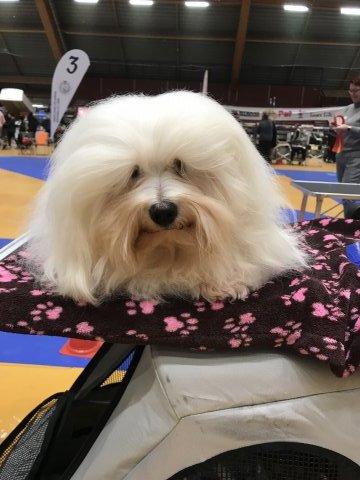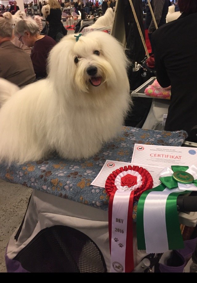Coton Langelands Kiki - alias Ines - har nu været på udstilling 3 dage i træk i Vejen. Alle 3 dage blev hun vinder af Babyklassen med meget fine kritikker.