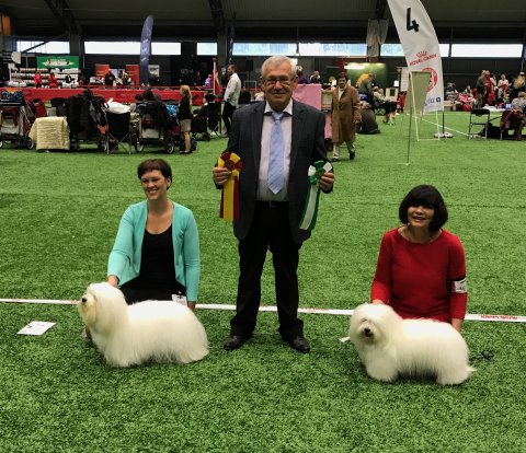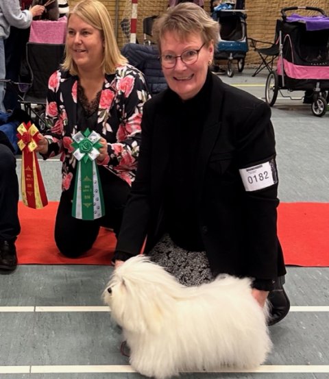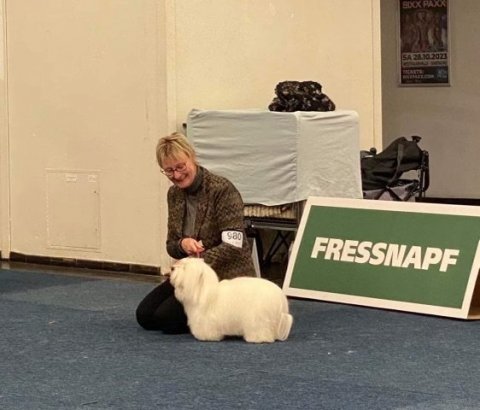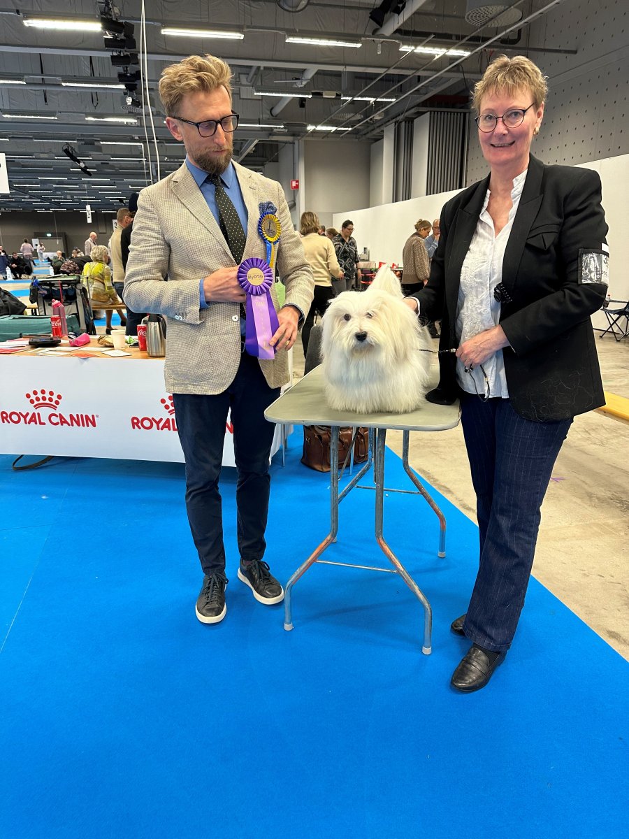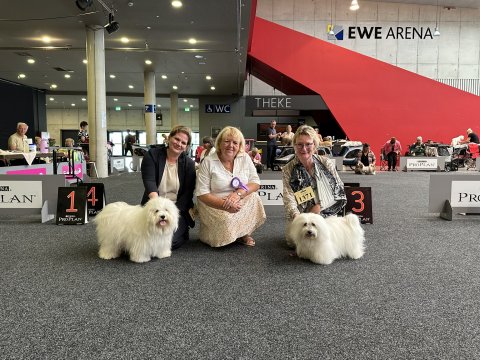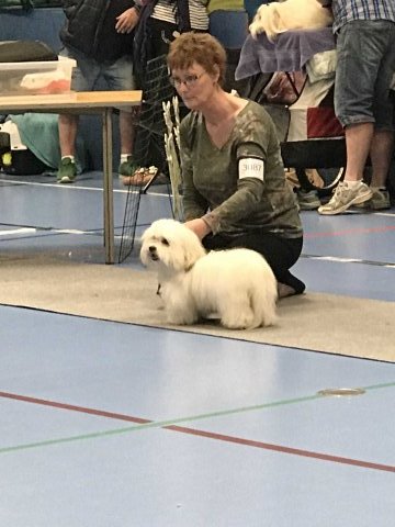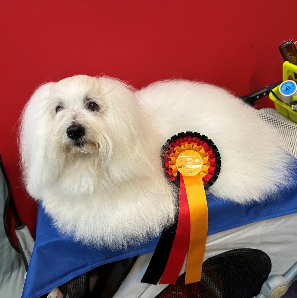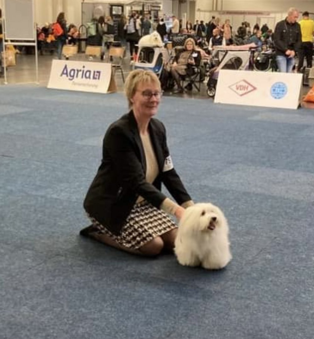 Også i Tyskland blev den første udstilling efter Coronaen en god oplevelse for Coton Langelands Freja. Hun blev bedst i modsatte køn - med FCI CACIB samt fik det første tyske cert.... Så kan hun blive tysk Champion om et år og een dag, hvis alt lykkes.