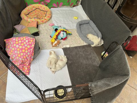 Efter 4 uger er det godt med lidt mere plads, men fødekassen er stadig rigtig rar.!