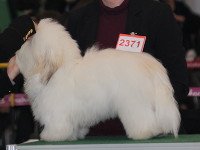 Bedømmelse: almost 6 month, excellent overall type and balance, well proportioned in head, strong bone and body, just needs a little more weight, excellent coat texture, very confident and steady movement, already with some ring presence.
