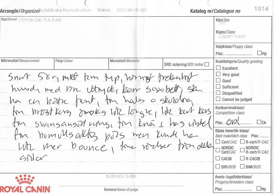 Freja deltog i åben klasse og fik præmieringen: Excellent, Plac 6.